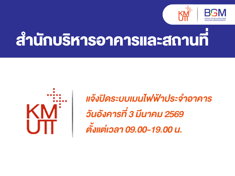 แจ้งปิดระบบเมนไฟฟ้าประจำอาคาร วันอังคารที่ 3 มีนาคม 2569 ตั้งแต่เวลา 09.00-19.00 น.