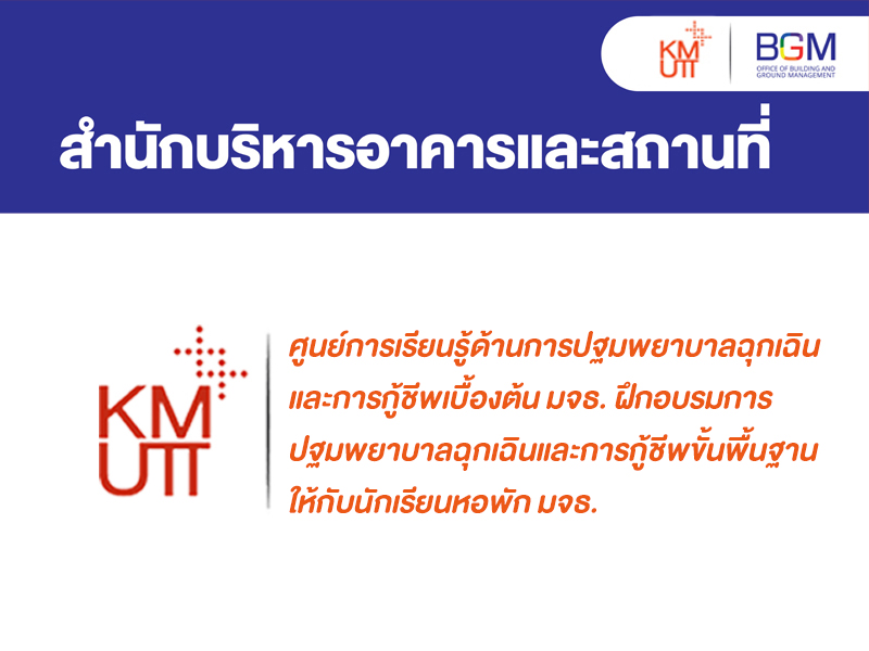 ศูนย์การเรียนรู้ด้านการปฐมพยาบาลฉุกเฉินและการกู้ชีพเบื้องต้น มจธ. ฝึกอบรมการปฐมพยาบาลฉุกเฉินและการกู้ชีพขั้นพื้นฐานให้กับนักเรียนหอพัก มจธ. บางขุนเทียน และพนักงานจ้างให้บริการทำความสะอาด